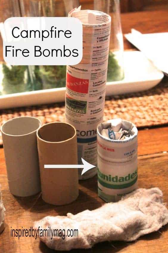Create your own Campfire Fire Firestarters with some of the scraps you have laying around at home. These are fun and easy to make and they are a great activity for all ages. Take a bit of cotton dryer lint and pack lightly in a left over toilet paper cardboard tube wrap tube in newspaper and you are all set.